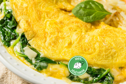 Œufs, béchamel (lait, fleur de maïs, beurre), épinards, fromage frais salé, crème fermière, emmental