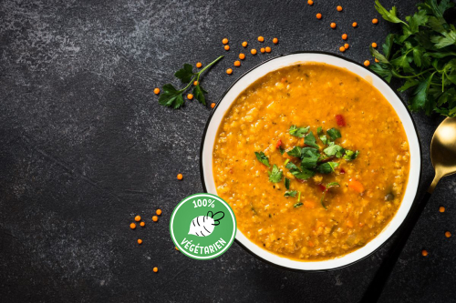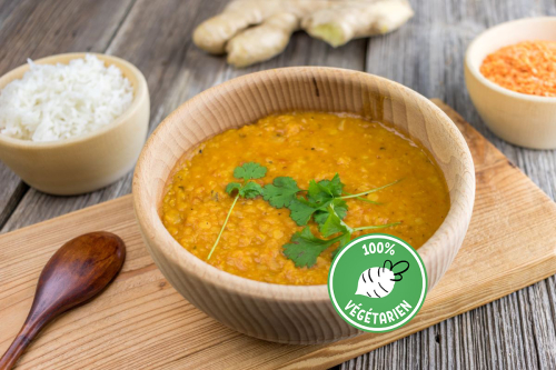 iPépites de soja, épices indiennes, bouillon de légumes, crème fe...